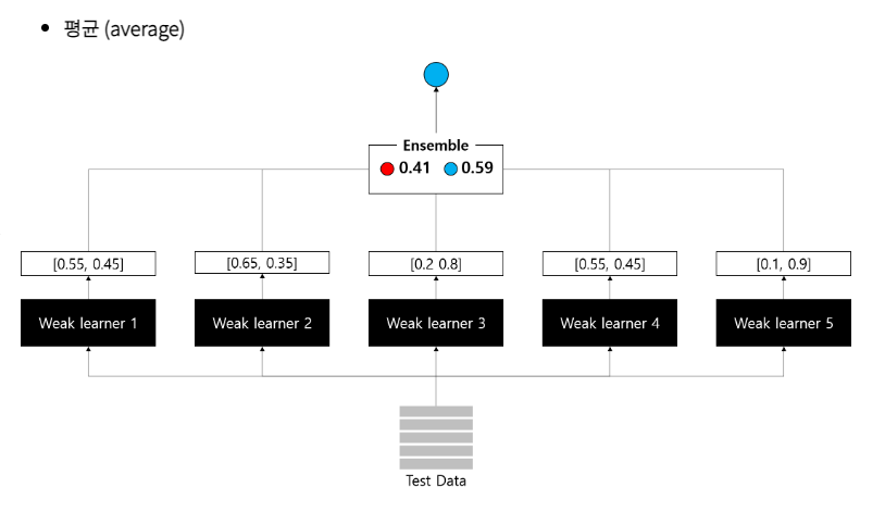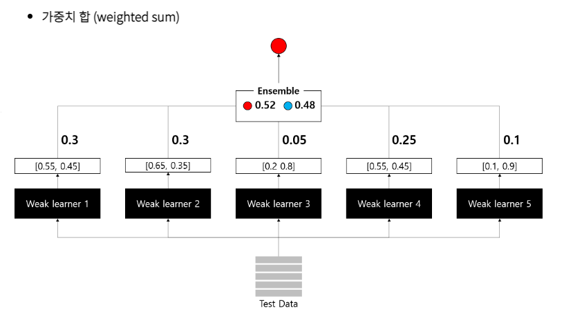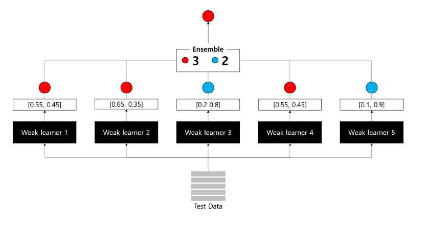 weak learner들의 예측 확률값의 평균 또는 가중치의 합을 구하는