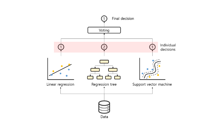 Voting 방식은 하드보팅(Hard Voting), 소프트보팅(Soft Voting)으로 나눠진다고 합니다.