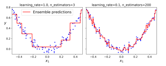 learning_rate 를 이용해서 각 트리의 기여 정도를 조절한다고합니다.