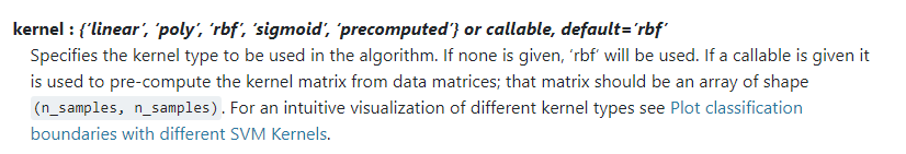 선택할 수 있다고 합니다. default 는 rbf입니다.