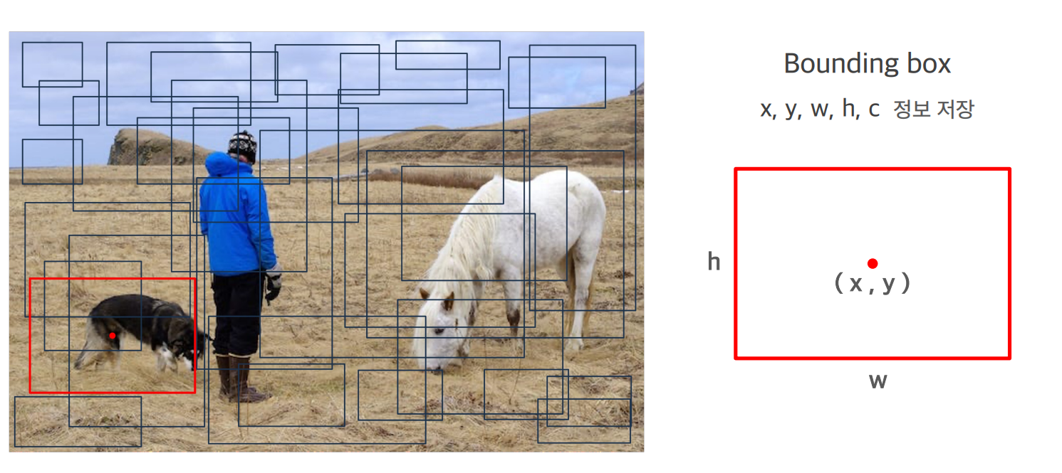 각 모델이 예측한 바운딩박스에는 x,y,w,h,c 의 정보를 저장하고 있습니다.