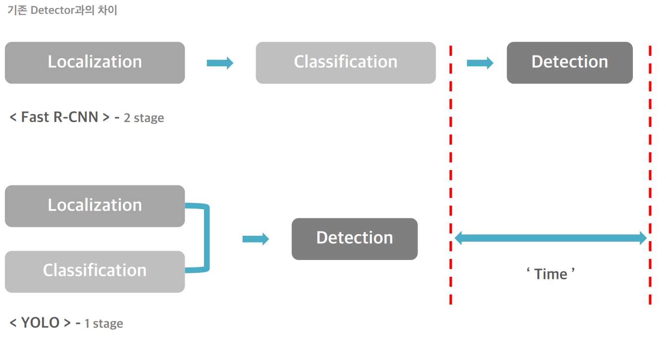 yolo는 1-Stage-Detector로서 한번에 객체의 위치와 분류를 진행하므로서,
