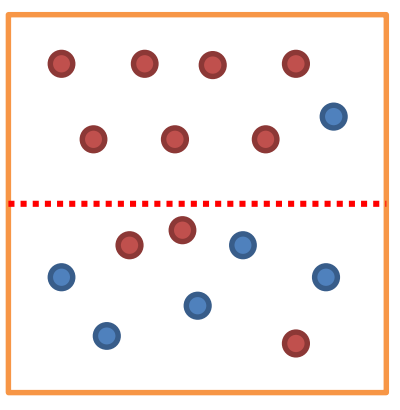 데이터의 종류는 빨간공, 파란공 2개가 되고,