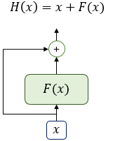H(x)함수의 입력값과 서브레이어 F(x)의 출력 값을 더하는 수식을