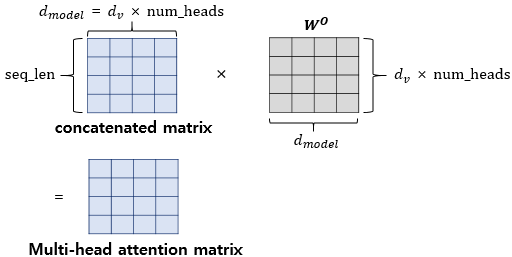 앞서 (seq_len, dv)의 크기로 나온 각각의 병렬 어텐션의