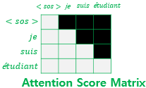 그러므로 디코더에서는 번역할 문장에 해당되는 <sos> je suis étudiant의 문장 행렬을 한 번에 입력받습니다.