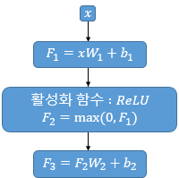 구조에서 보이듯 하나의 Relu 함수를 activation함수로 가지는 히든레이어로 구성되며