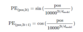 PE(pos,2i) : 포지셔널 인코딩 중 짝수 인덱스