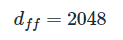 논문에서는 하이퍼파라미터 dff의 값 2048의 크기를 넣어주었으므로