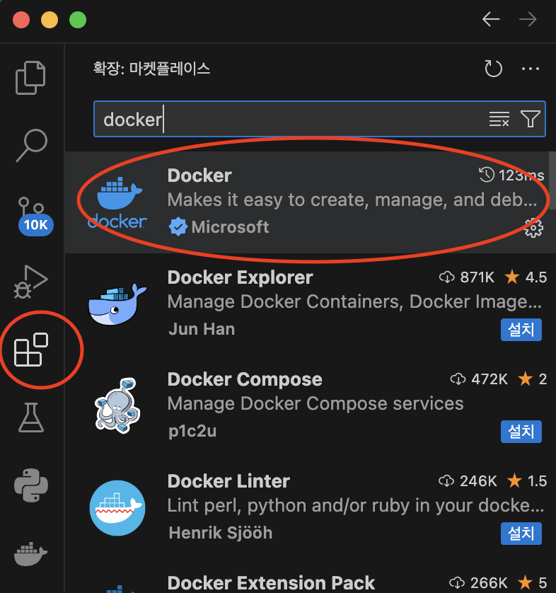 docker를 검색해서 Docker Extended를 설치해주세요.