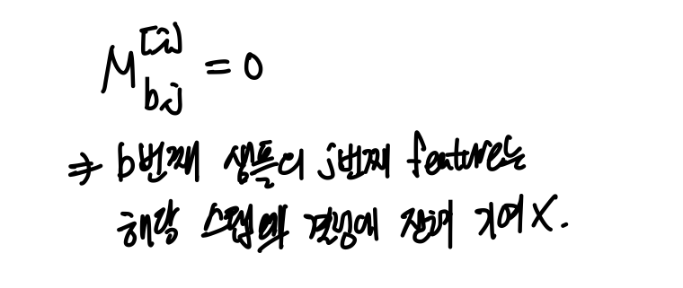 마스킹은 마스크 M[i]에 feature를 곱해주는 작업입니다.